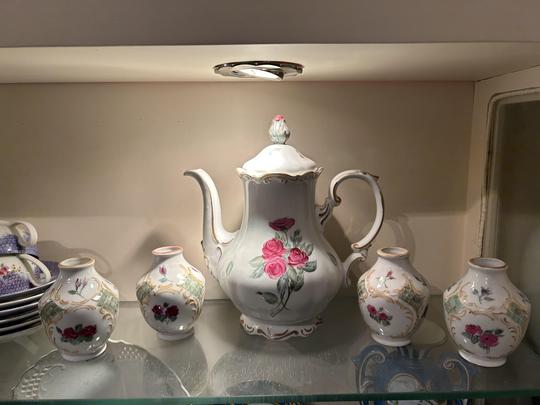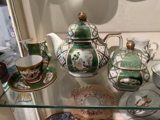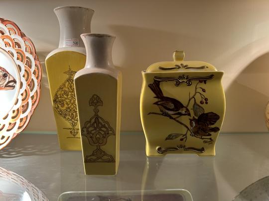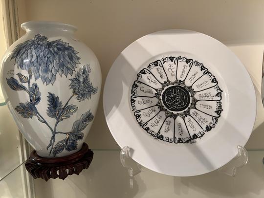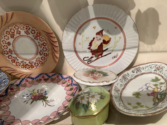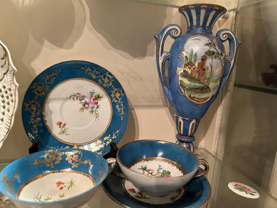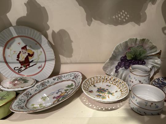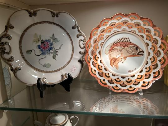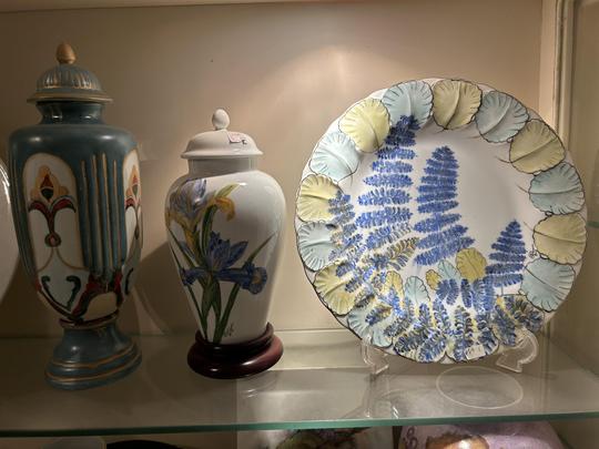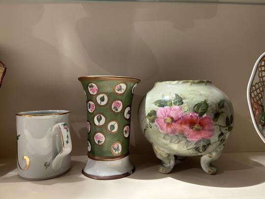 Hand-painted porcelain and ceramics.